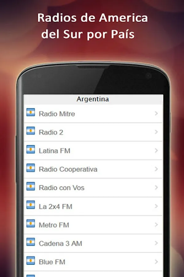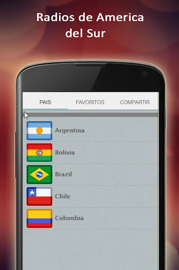 + Within this application Radios South America will have access to many of the stations for each country.