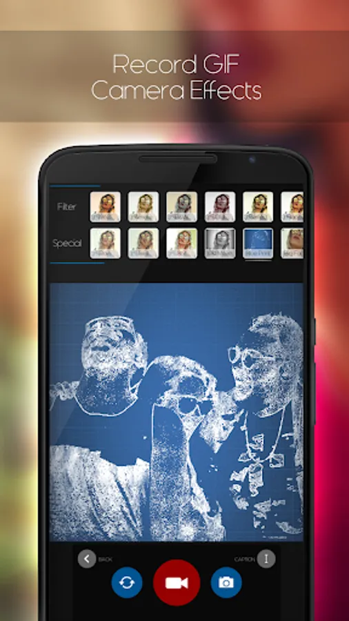 If you like those static images, you can simply take a normal photo with all those Crazy Camera Effects.
