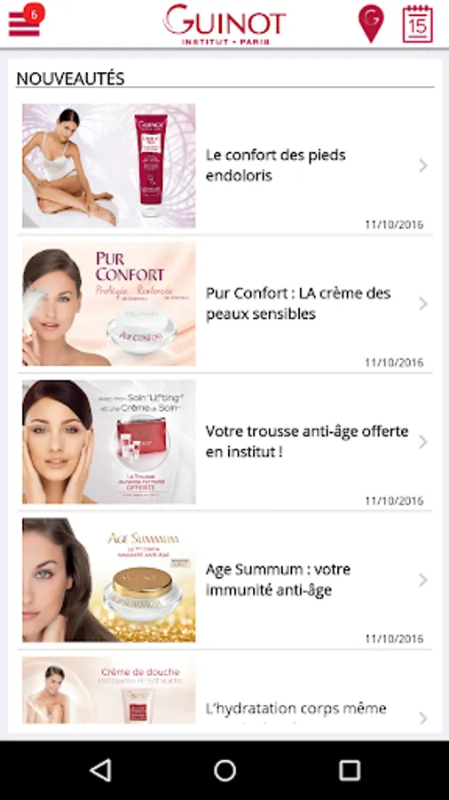 Guinot The application allows you to stay connected 24 hours / 24 and 7/7 in your favorite beauty institute.