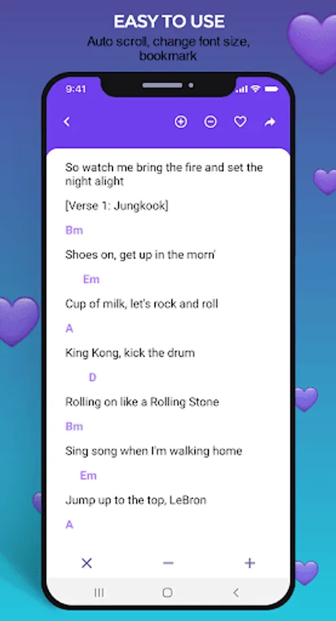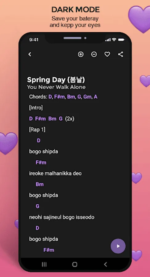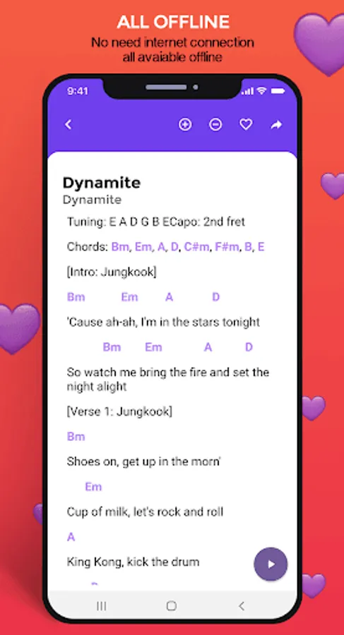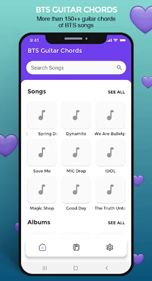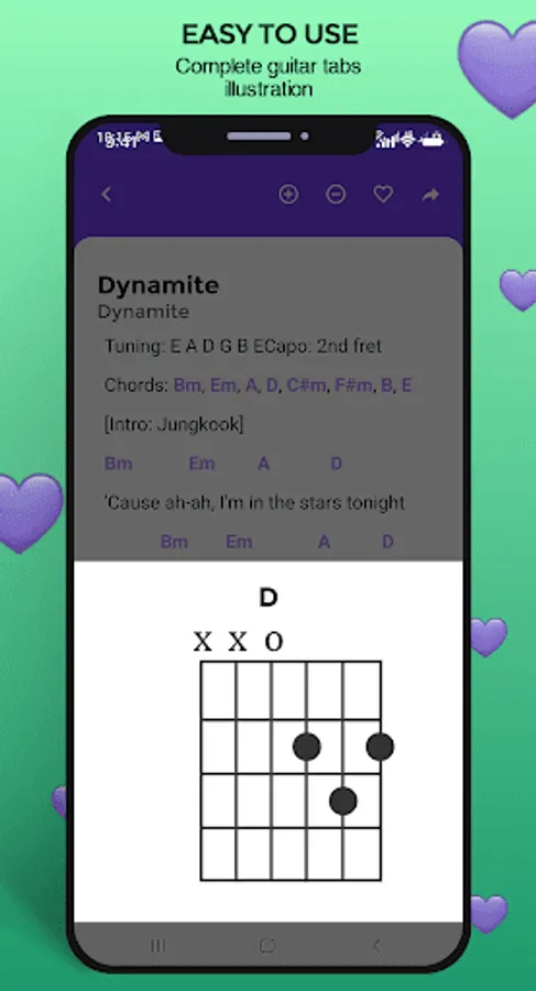 You can learn to play BTS songs with guitar through this application. In it there are more than 200 guitar chords for BTS songs. All offline and easy to use. Here are the interesting features of this application: