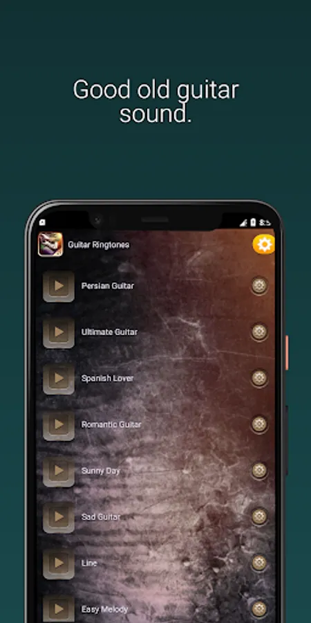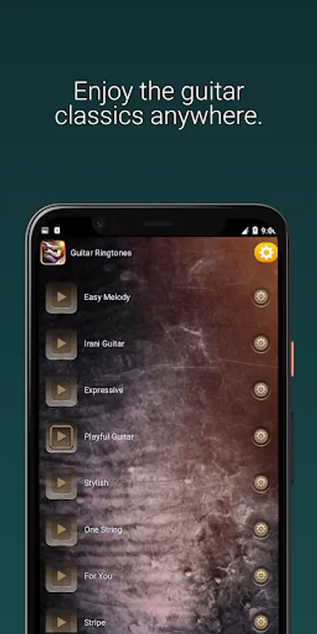 Guitar Ringtones brings a fantastic collection of melodies written specially for guitars or made famous by their interpretation. All the genres where this wonderful instrument glitters, such as:Classical Guitar, Flamenco, Country, Bluegrass, Blues, Jazz Guitar, Rock n Roll, Hard Rock, Heavy Metal, Pop, Funk Guitar and many more are present here…Browse through this guitar music soundboard and set the best SMS alert tones, alarm sounds and amazing ringtones! This new ringtones app brings you the greatest legendary sounds. You can now enjoy your favorite songs and melodies daily, whenever someone tries to contact you on your phone!