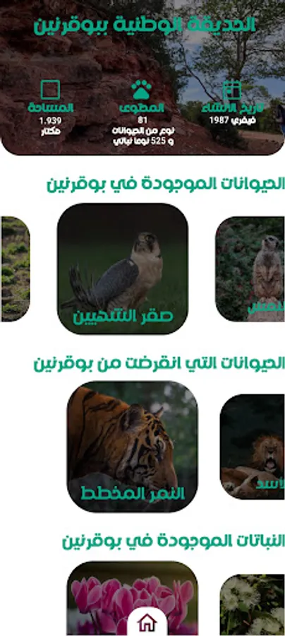 كما يمكنك تطبيق نارو من تصفح مختلف المعلومات التي تخص الجبل و الكائنات التي يحتويها٠