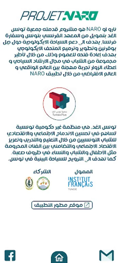 تطبيق يمكنك من عيش افضل تجربة عند زيارة المتحف البيئي ببوقرنين باستعمال الواقع المعزز, حيث ستجب في المتحف رموز لمختلف الحيوانات الموجودة في الجبل, فور مسحك لاحد تلك الرموز بكاميرا هاتفك من خلال تطبيق نارو, سيخرج لك الحيوان و كانك تراه في الواقع بالاضافة الى معلومات صوتية و معلومات مكتوبة٠