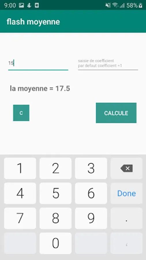 with the simple interface it offers you, average flash allows you to calculate your average quickly and immediately, enter each time your score and its coefficient