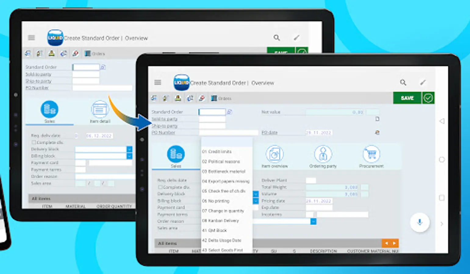 In addition, with Liquid UI you can also FLEXIBLY innovate your SAP transactions on Android as per your business requirements along with your screen real estate needs. Furthermore, enjoy the same SECURITY that you get with SAP because of the app’s native connectivity and support to TLS encryption over wirelessly transmitted data.