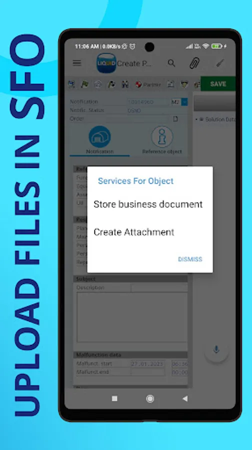 • Attach instantly via SFO – Instantly attach an image or a video file to your SAP transaction from your device.