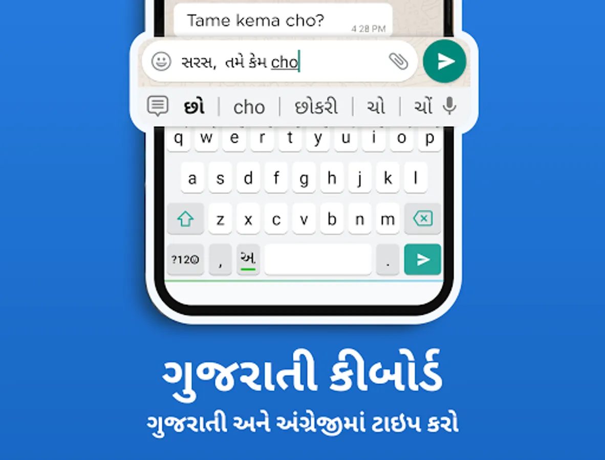 Chat with your friends and family in your native language - use native Gujarati text on any chatting or social media apps on your phone like a regular keyboard.