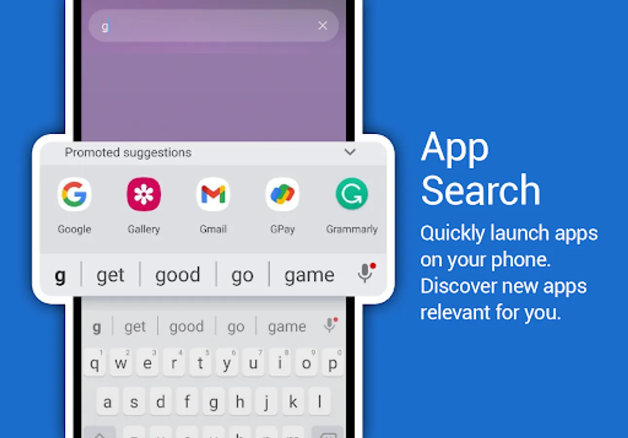 - Easily search and open apps installed on your phone and discover new apps relevant to you with our App Search feature.