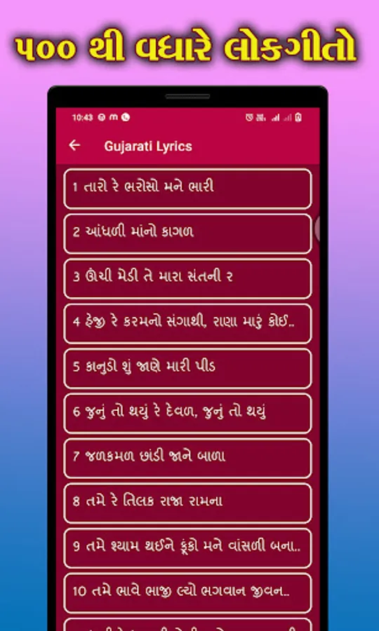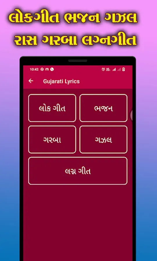 Gujarati Lyrics App for all generation becuase its includes Ras Garba, Lokgeet, Bhajan, Santvani, gazal and Lagn geet.