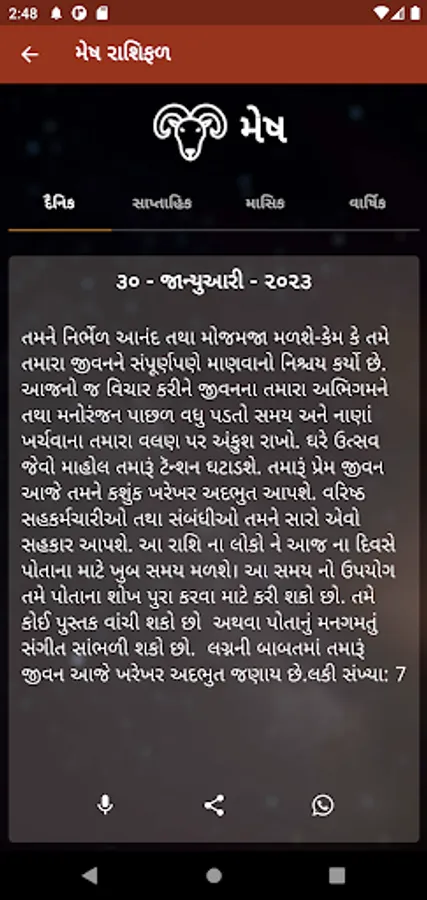 Get daily, weekly, monthly, and yearly horoscope and share them with one click. Create a horoscope image with a custom background.
