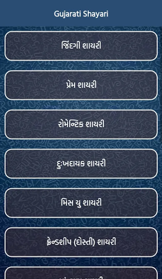 Gujarati Shayari App Categories:-