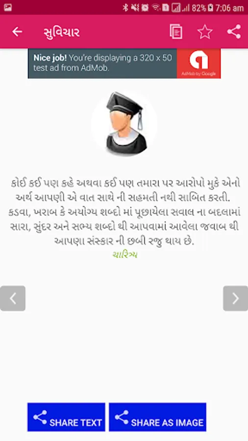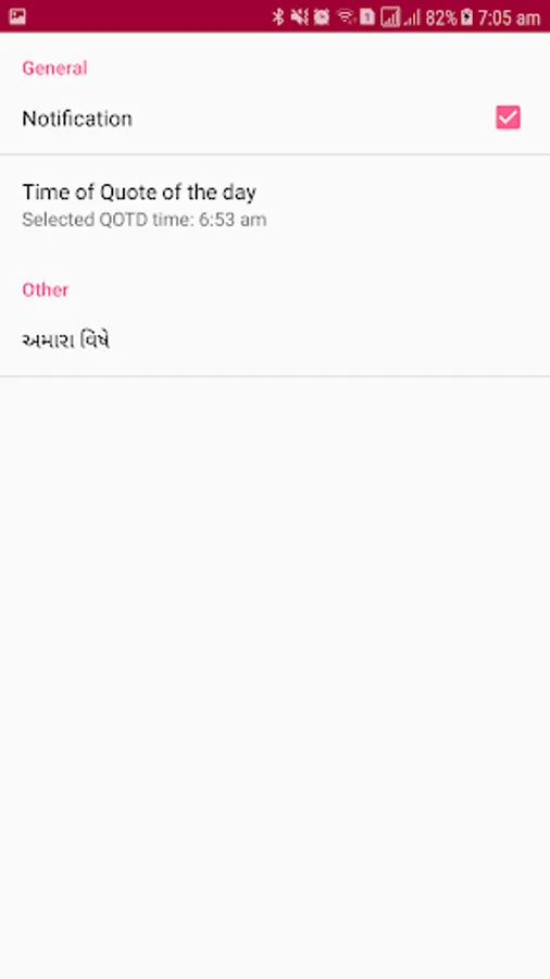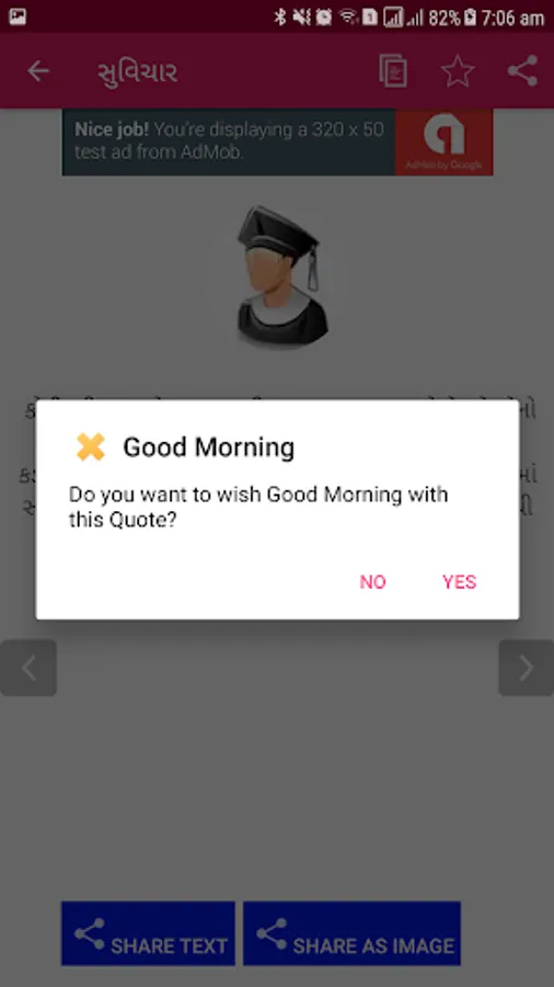- Suvichar of the day. Set special timing for Suvichar of the day and the application will display one suvichar of the day everyday on your seted time. This functionality enables you for NO NEED TO FIND NEW GOOD MORNING QUOTE EVERY MORNING.