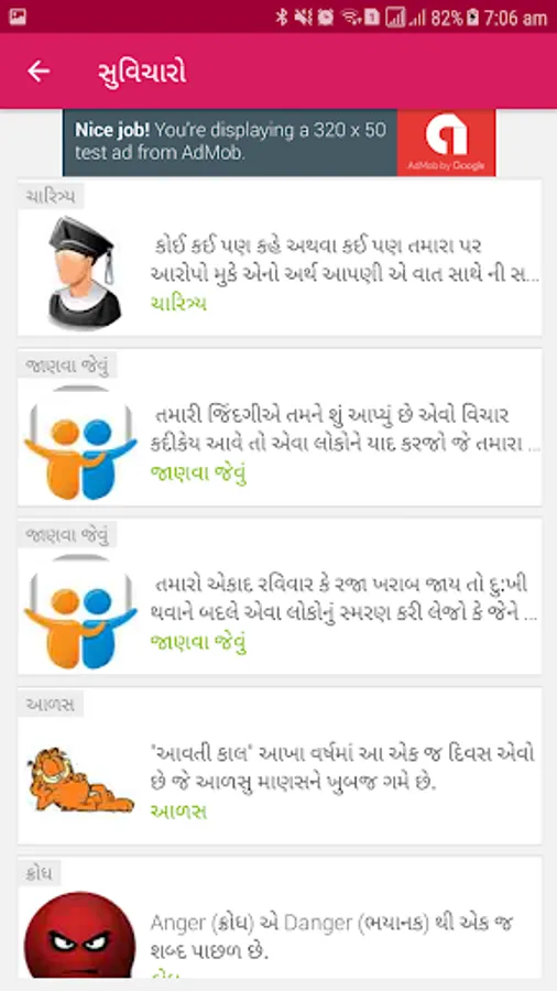 Gujarati Duniya (This application) contains 2500+ Gujarati Suvichars (Good Thoughts), Jokes and Shayris in Gujarati font.