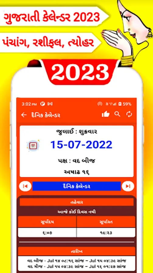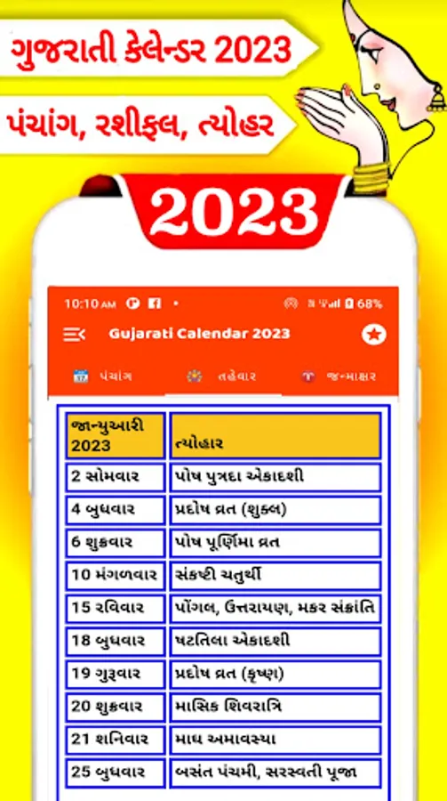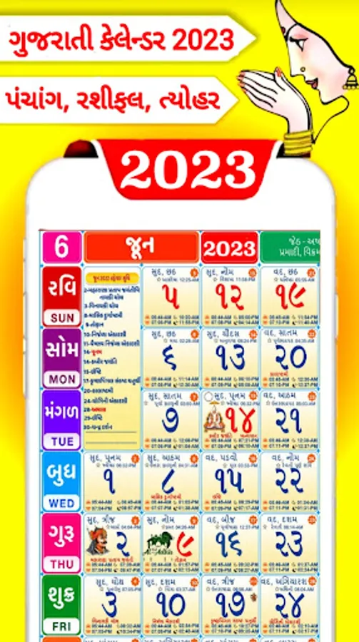 Gujarati calendar apps is highly useful to know festivals, holidays, Shubh Muhurat & Gujarati panchang 2023 information