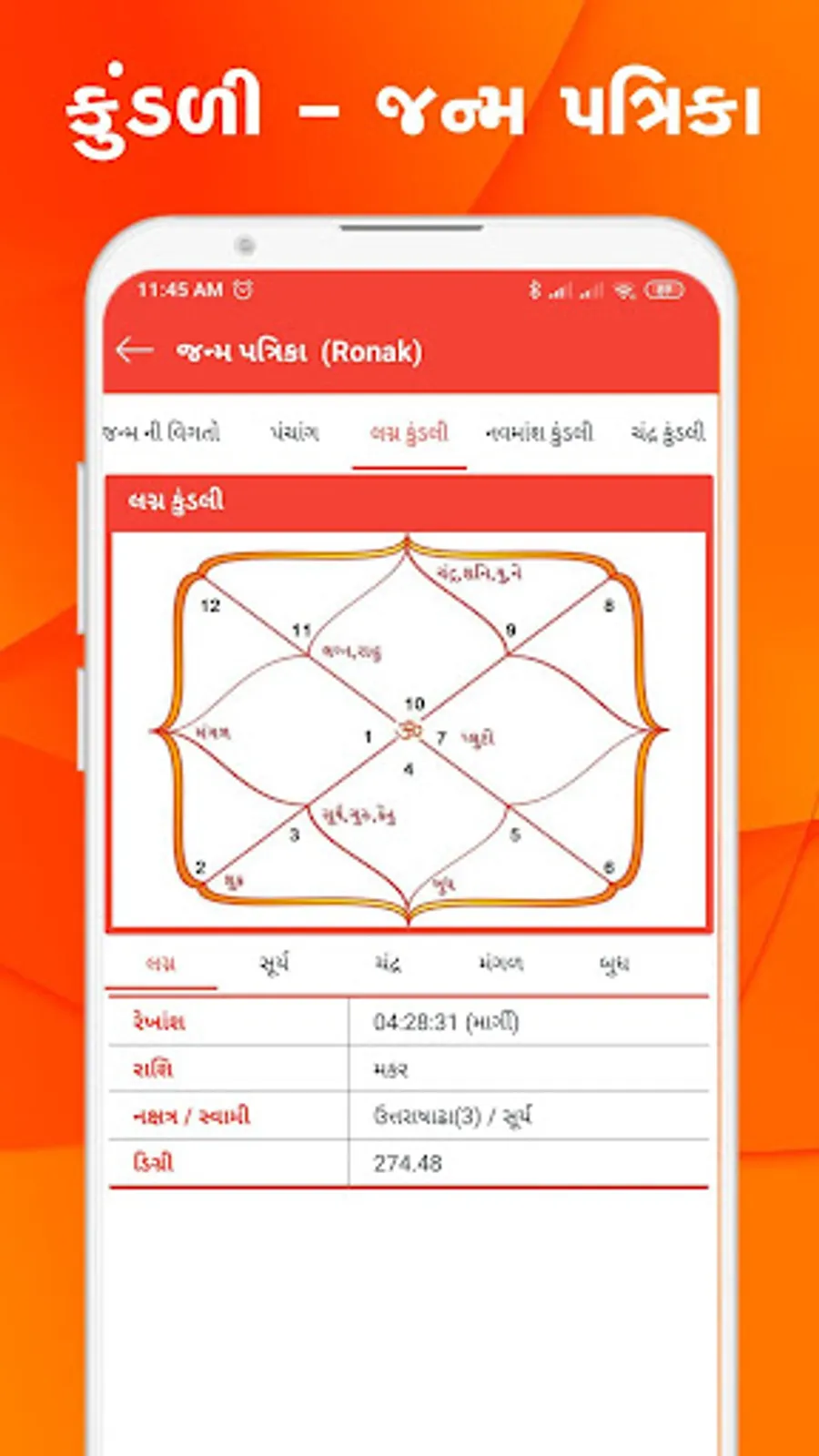 આ એપ્લીકેશનમાં તમે બાળકના જન્મ તારીખ, જન્મ સમય અને જન્મ સ્થળ ના આધારે બાળકની રાશી જોઈ શકશો તેમજ જન્માક્ષર પણ બનાવી શકશો.