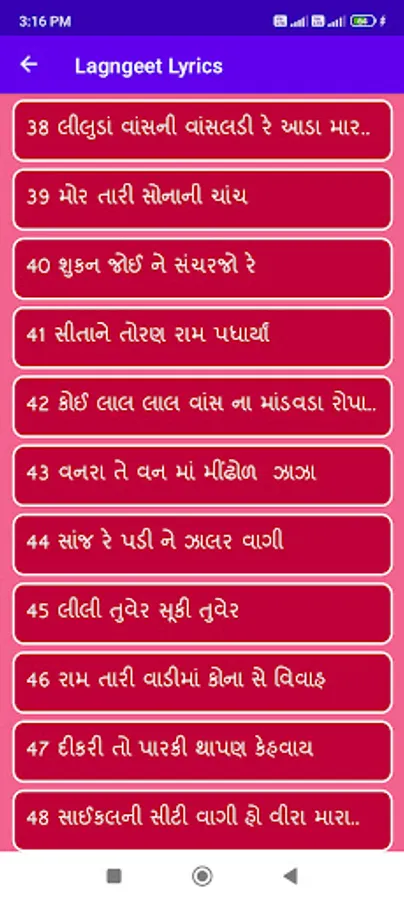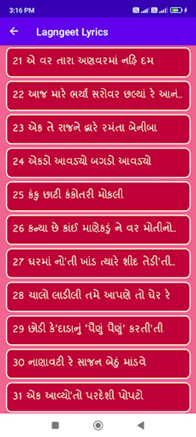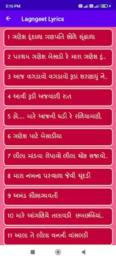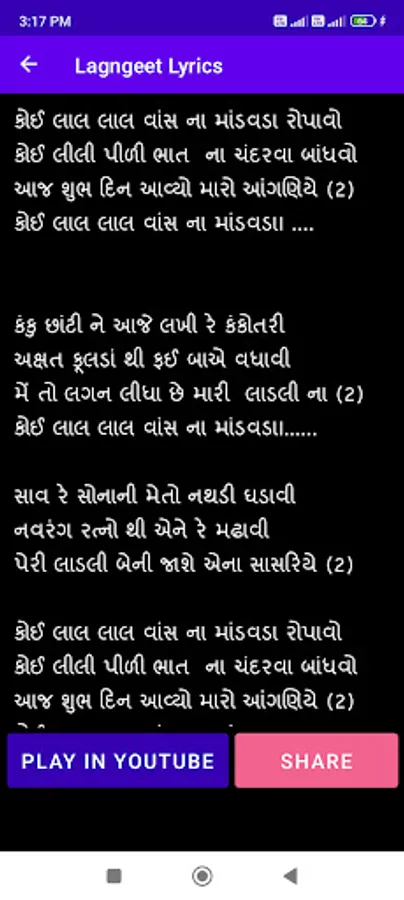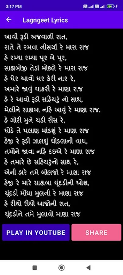 Gujarati Lagngeet Lyrics app provides wide range of marriage song lyrics from gujarat. some trending songs like