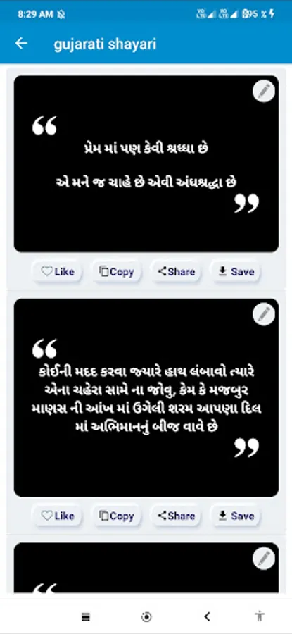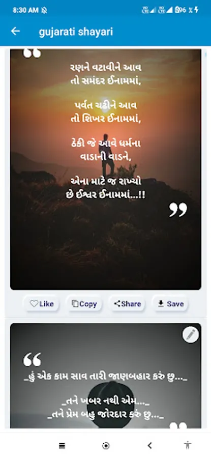Gujarati Shayari gazal app contains latest collection of huge Gujarati status like friendship available for download and share to friends and social media apps.