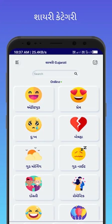 good morning shayari gujarati too. You will also find sad shayari gujarati in this app, as well as gujarati shayari, dosti shayari gujarati. This app also provides gujarati attitude shayari with gujrati love shayari.