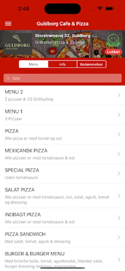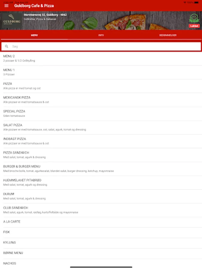 Bestil pizza, burger, pasta, m.m. med få tryk, nemt og hurtigt!