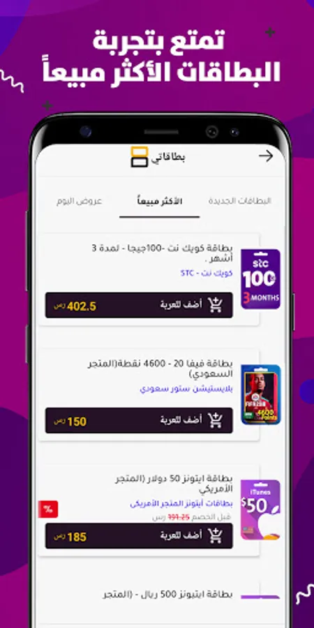Enjoy the easiest and most trustable shopping experience in the MENA region. Choose from more than 850 different cards, as we provide you with all cards and dominations of iTunes cards, PlayStation, Google Play, mobile and internet, and much more.