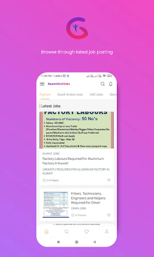 Search Gulf Jobs app is developed by Searchgulfjobs.com team with the intention to get latest job updates to job seekers in middle east. Job opportunities from the gulf is updated in the app and website every day. The jobs are categorised to different counties which helps the job seekers who are already residing the in the specific country to search the jobs nearby them.