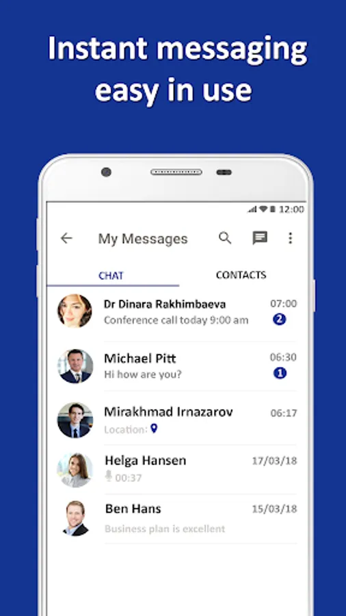 Create your user profile which allows users to communicate and send text messages, documents, images, videos, location, audio.