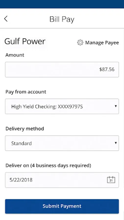 - Make a payment, add a new bill to pay and edit or cancel bill payments