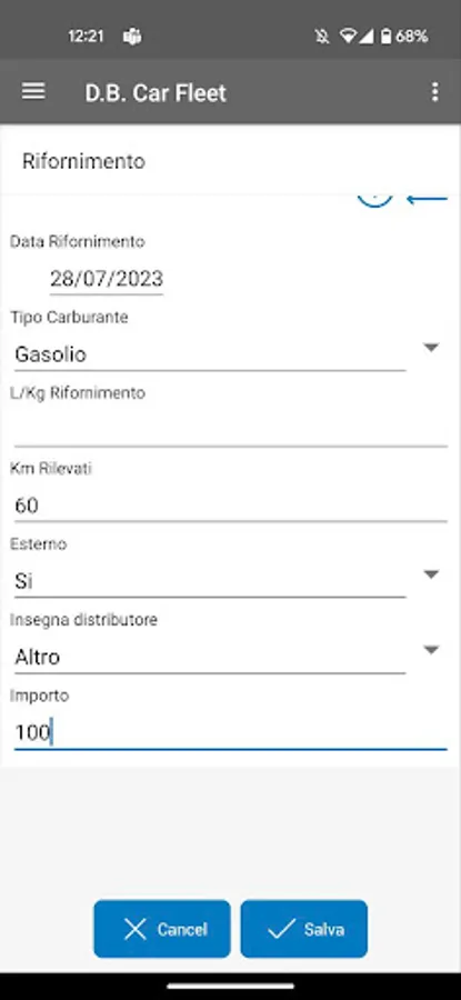 The application, dedicated exclusively to D.B. Group, allows you to detect the monthly km and the refueling of the cars in the company fleet.
