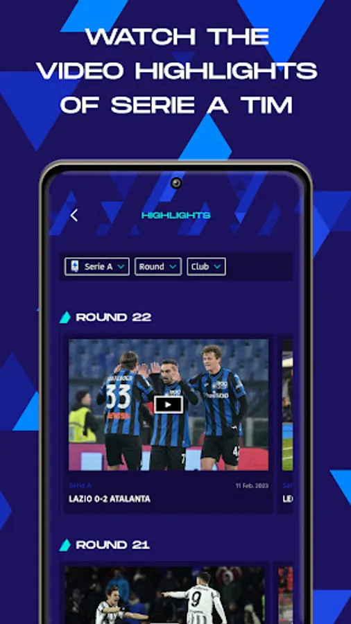 The Serie A official app has been completely renewed. Discover the app's original features and live the emotions about all the Lega Serie A competitions:
