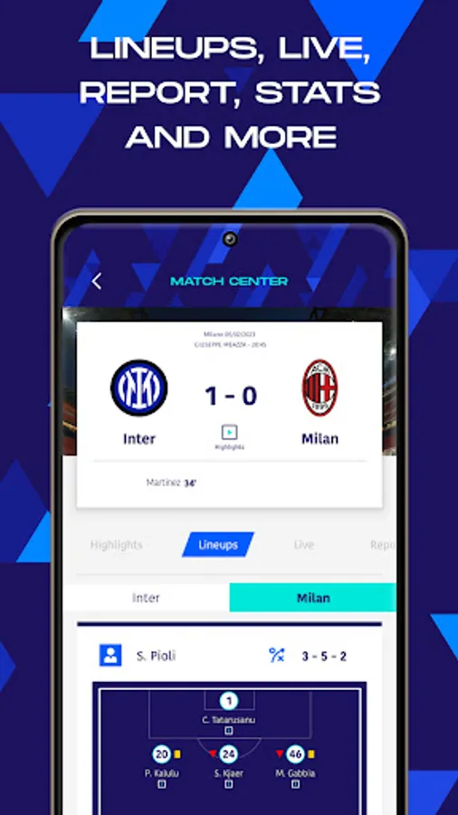 Inside the app you'll find information about all the Serie A TIM Teams: Atalanta, Bologna, Cagliari, Empoli, Fiorentina, Genoa, Hellas Verona, Inter, Juventus, Lazio, Milan, Napoli, Roma, Salernitana, Sampdoria, Sassuolo, Spezia, Torino, Udinese, Venezia.