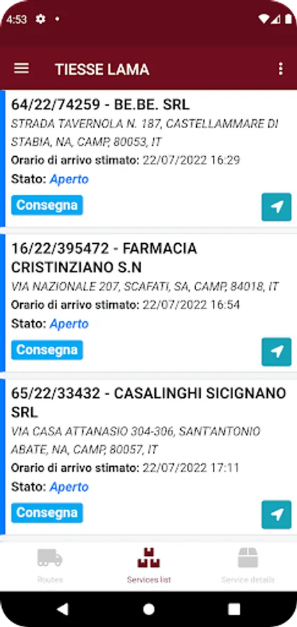 App for managing the direct distribution of goods on the last mile used by the fleet of