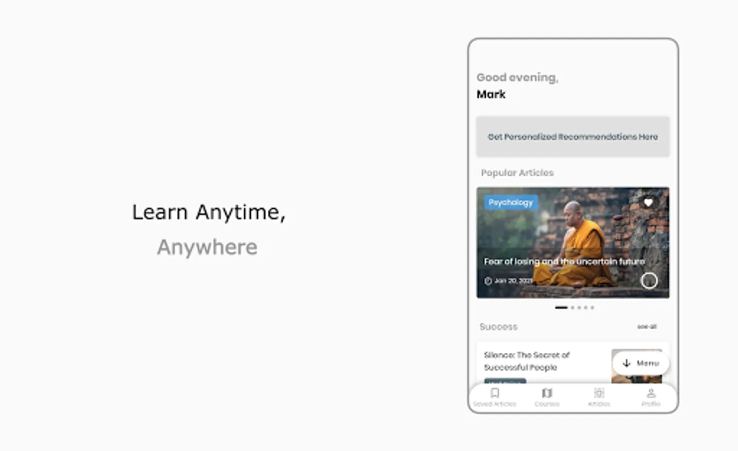 • Mental wellbeing, self-discipline, personal achievement, psychology, meditation and other article categories available