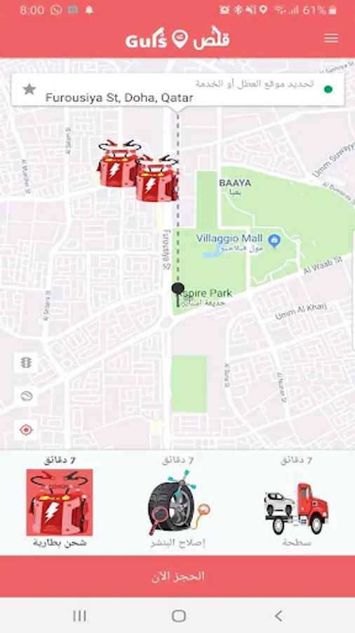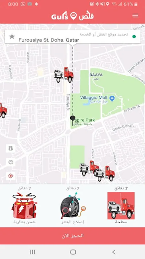 Guls application provides roadside assistance services such as towing, flat tire repair, battery charge and fuel delivery. Request assistance on the road anytime, anywhere in Qatar.