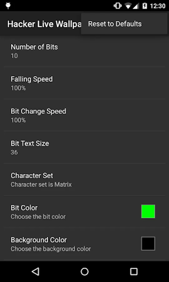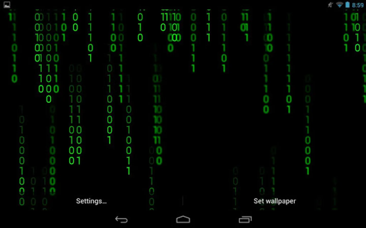 A live wallpaper of binary sequences streaming down your screen. Should make any hacker feel at home.