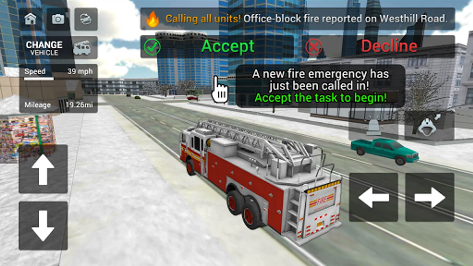 Not ready for the fire fighting line of duty just yet? Don't worry you can decline missions and just explore the city in your range of fire trucks! If you're looking for some fun spray other cars with your fire hose and wash them away!