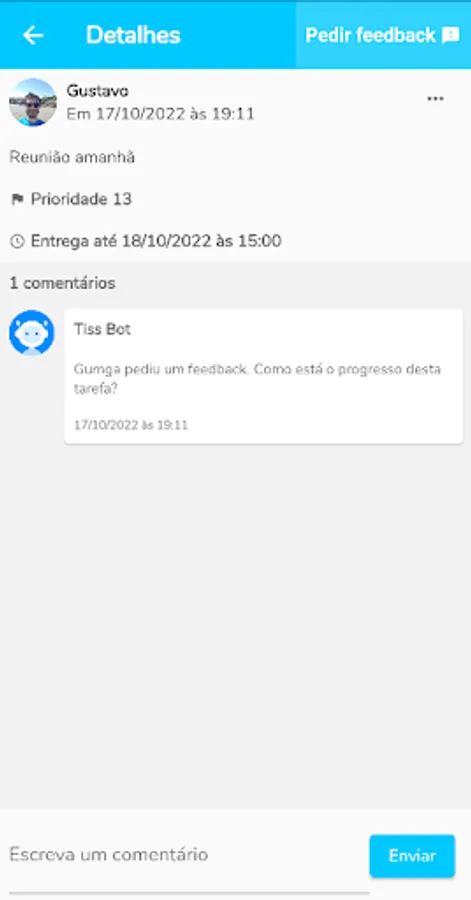 Investing in the organization of your time and tasks is the way for those who seek greater productivity, but this is getting more difficult every day. To help people overcome this challenge, we created TISS, with which you can delegate tasks to anyone, set a due date, request feedback and assign stars for efficiency.