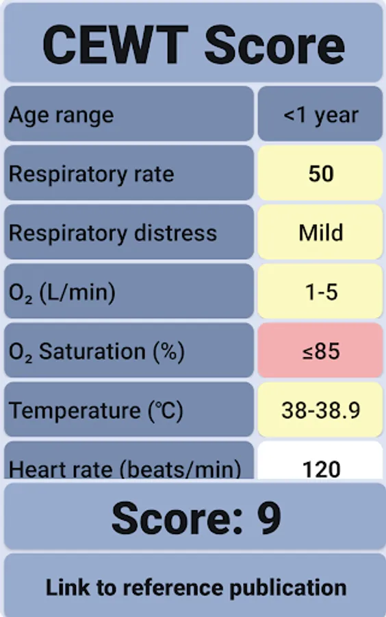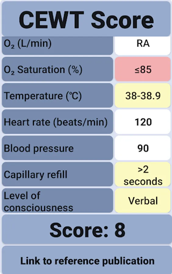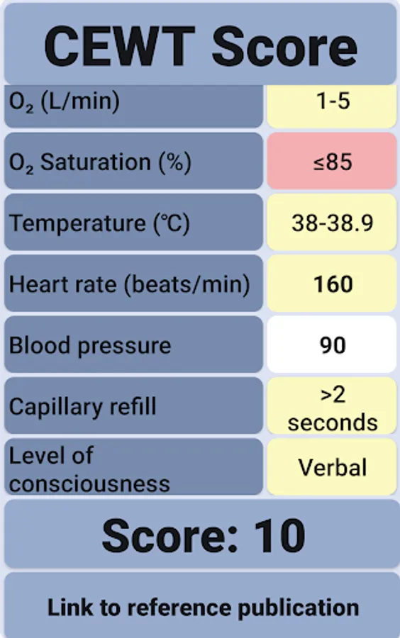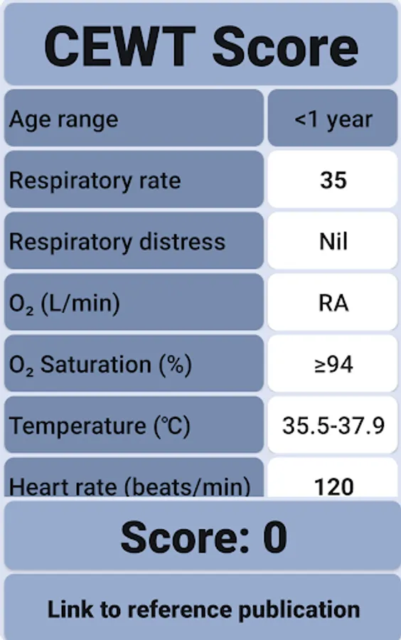 This app is an implementation of the CEWT score as defined in - https://adc.bmj.com/content/archdischild/early/2021/04/29/archdischild-2019-318634/DC1/embed/inline-supplementary-material-1.pdf?download=true - The app can be used to quickly calculate the CEWT score. As an addition to the original score card, the app will score "MET call" when any of the values for Respiratory rate, Heat rate or Blood pressure are out of the defined ranges. Any input for improvement will be much appreciated at gumptionmultimedia@gmail.com.