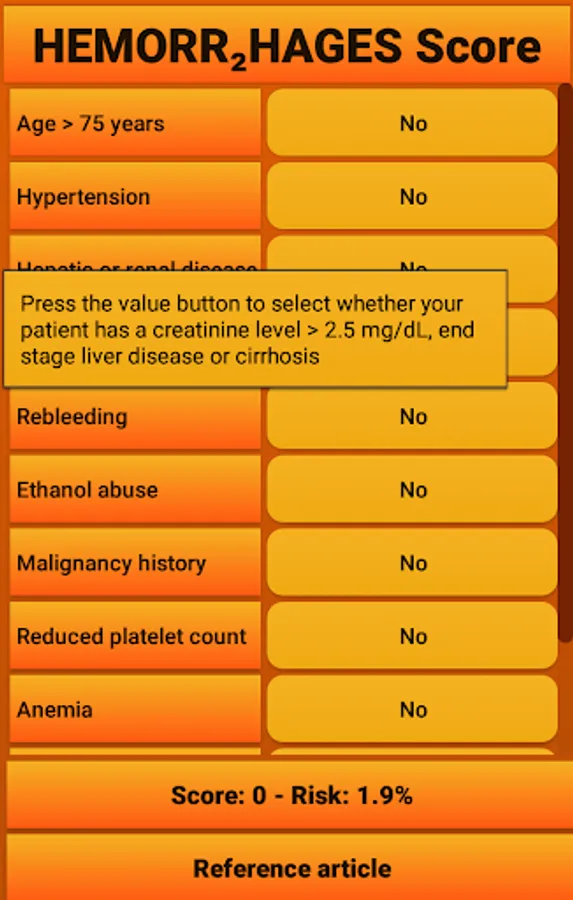 Small, easy to use app to score your patient's bleeding risk using the Hemorr2hages criteria as determined in https://www.ncbi.nlm.nih.gov/pubmed/16504638.