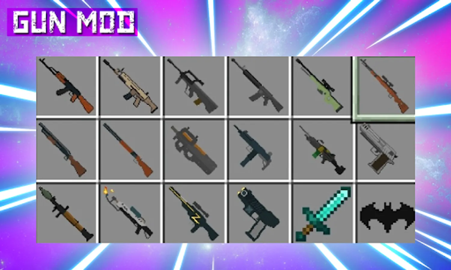 2. The most popular mods are collected in one application guns mod for mcpe.