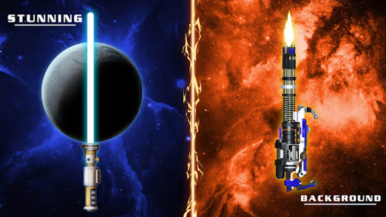Lightsaber - Gun 3D simulator include saber sword & sci-fi gun with the amazing variety of lightsaber sounds & gun sounds effects. This app can simulate realistic 3D lightsaber and sci-fi gun effect with color, sounds when swing, spin or even you move slowly, the sounds is different depends on your action. Besides, you can choose color, turn on the flashlight and shake the lightsaber as well as gun for more realistic simulation. Enjoy stunning visual effects and custom shooting visuals and audio for each weapon.