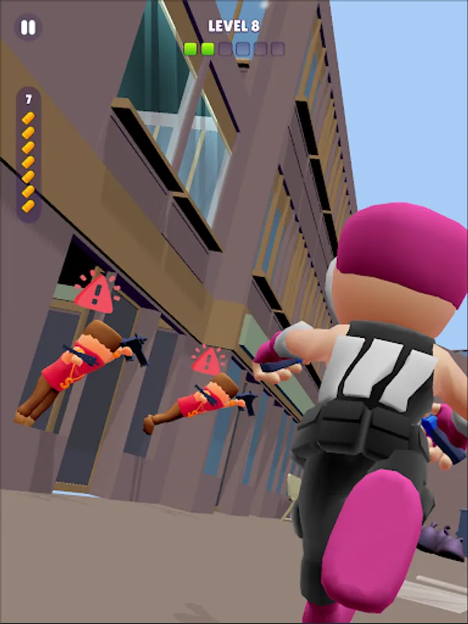 Gunshot Run is an exciting and action-packed shooting game with a pumping rock soundtrack, where you perform incredible acrobatic feats as you run and gun down hordes of enemies 👊 and rescue civilians in beautifully designed and varied levels.