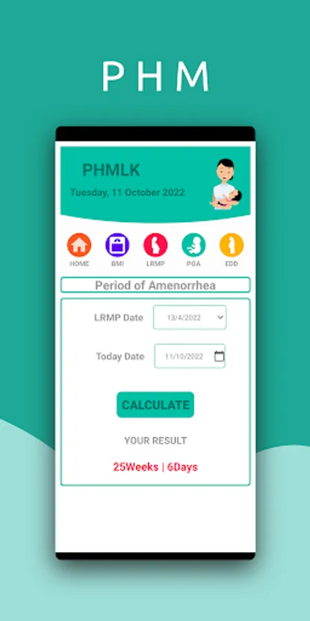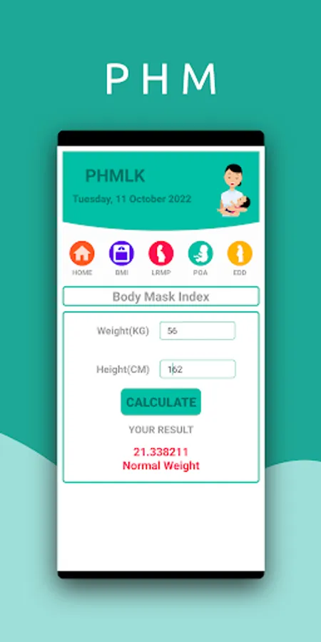 Through this application you can easily check body mask index, period of amenorrhea date. Last Regular Sensual period date, and period of amenorrhea date from Last Regular menstrual date. And Expected date of Delivery date check can also be done easily.