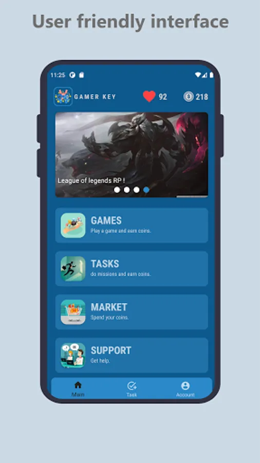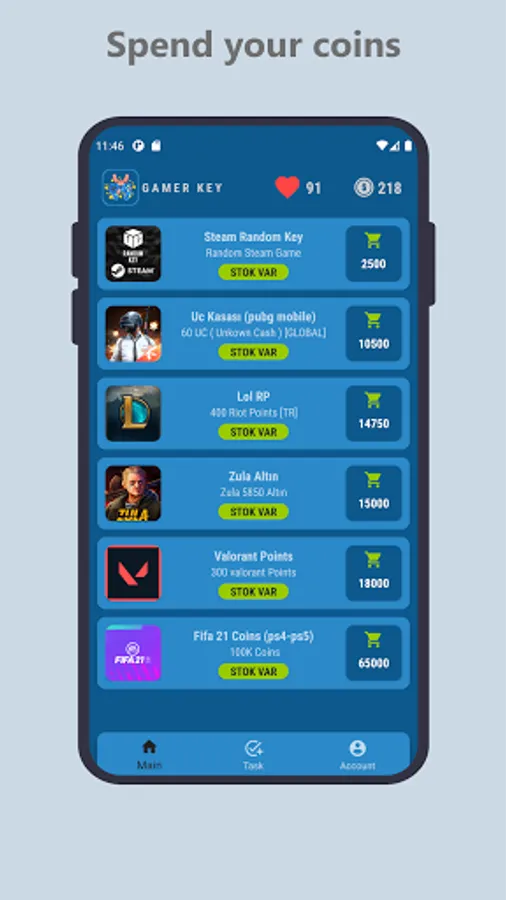 Thanks to the application, you can earn codes in games such as Valorant, league of legends, pubg, steam, fifa.