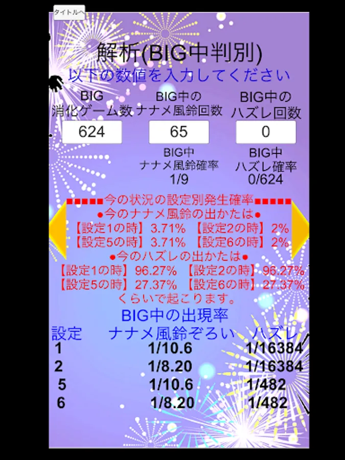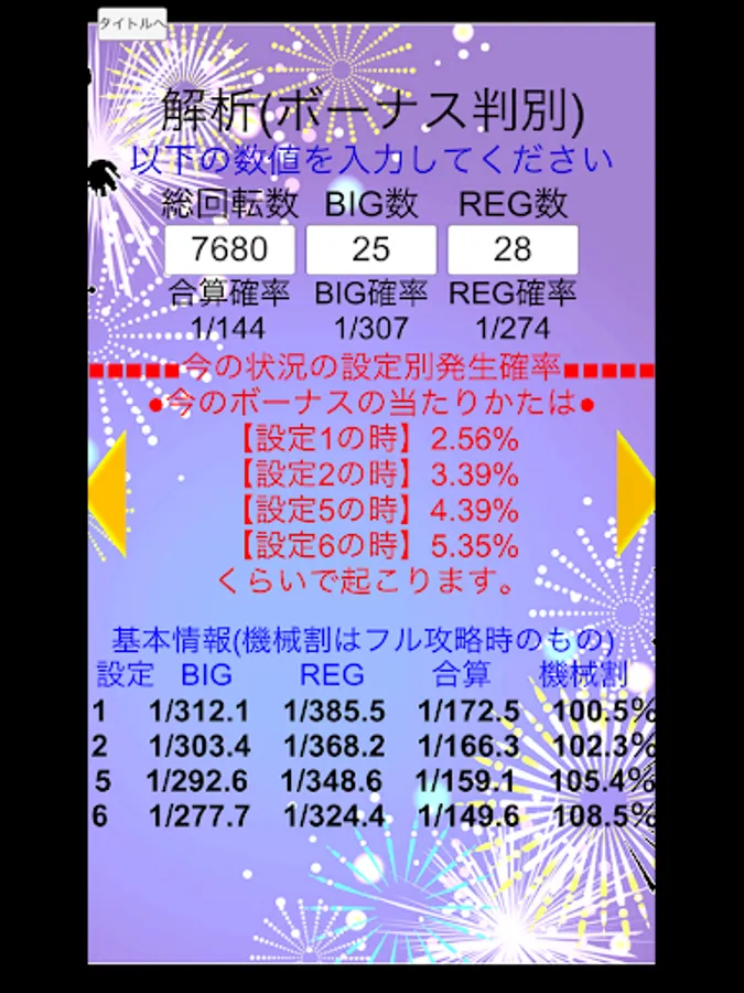 総回転数、BIG回数、REG回数を入れるだけのボーナス設定推測。