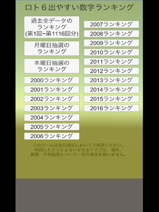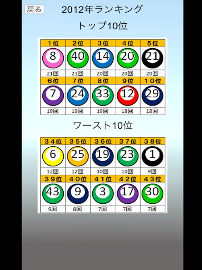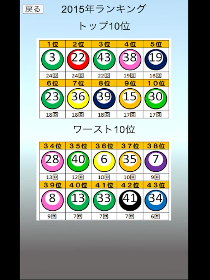 「これまでの全抽選回の本数字ランキング」(第1回~1116回分)