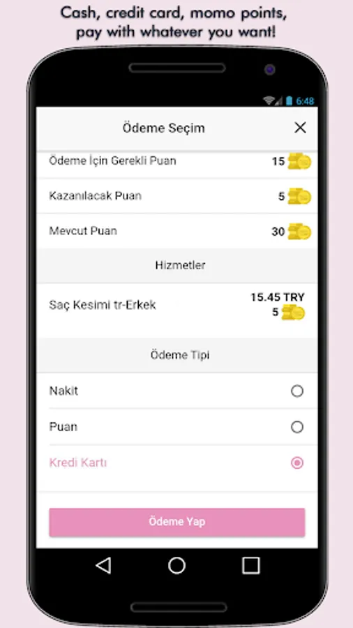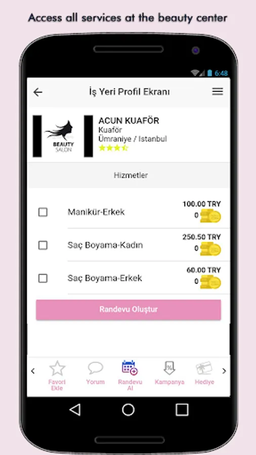 VIPTime APP you can make a location based search to reach the Personal Care Centers such as Beauty Salon, Hairdresser, Barber, SPA, Massage Halls, you can make an appointment on the appropriate day and hour, pay the service fee through application and pay by credit card. You can win VIP Coin.