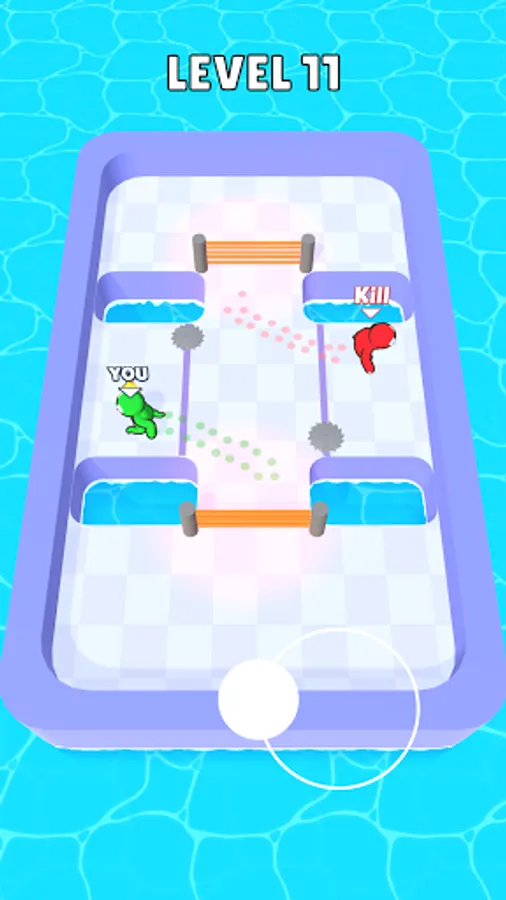 With mirrored movement, take your RED TWIN to the lasers, saws, water and take him out!