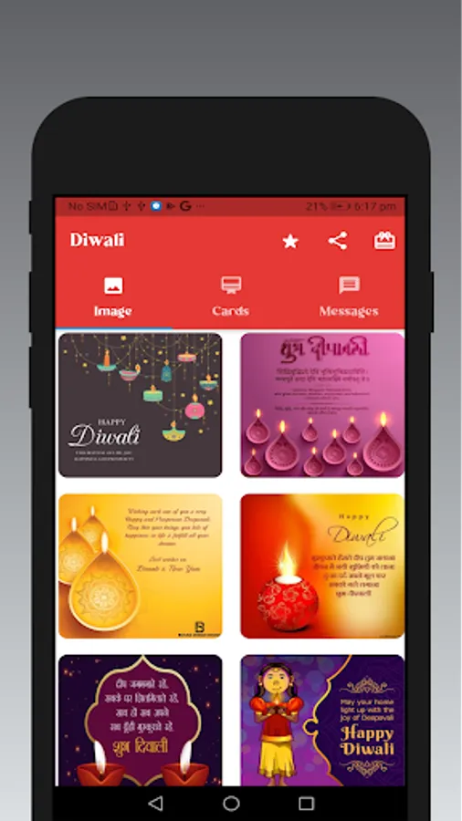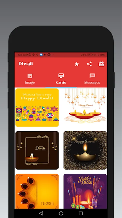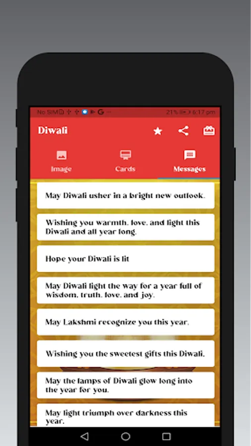 Diwali Greeting cards app can send beautiful Diwali greetings, Diwali wishes, Diwali messages, Diwali stickers to your friends, relatives, loved ones, colleagues and business partners.