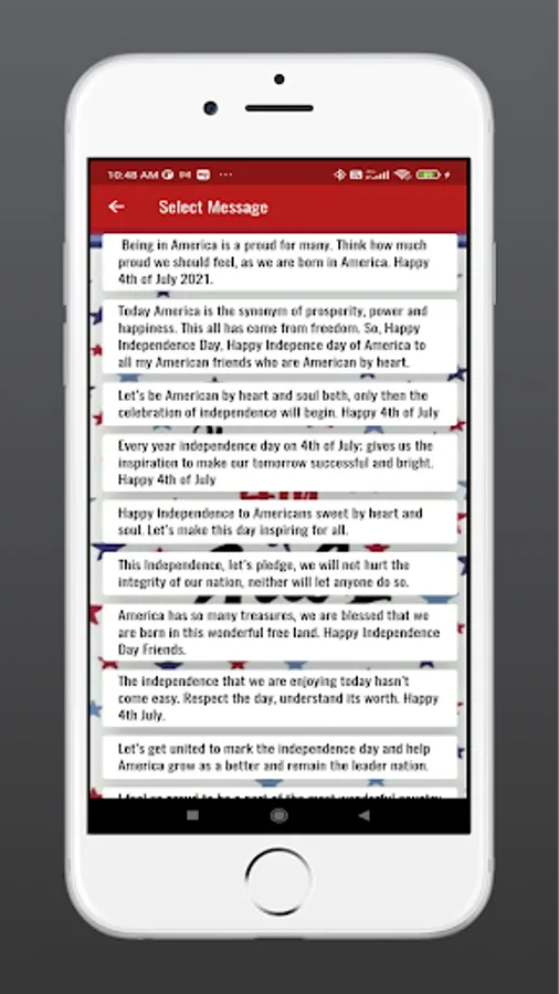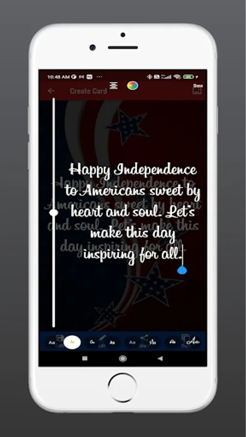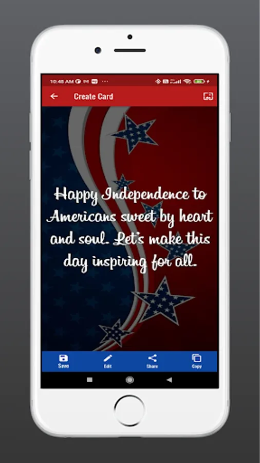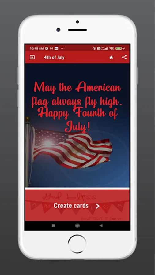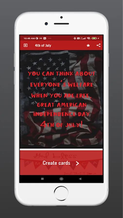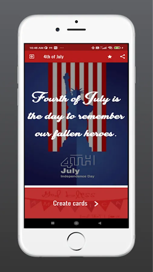 '4th of July Cards Creator' app provides you make your custom cards and messages as your wish for Edit Cads,share Cards,copy Message and Download Cards and share to social media like, Whats app, Facebook, Instagram and other social media.