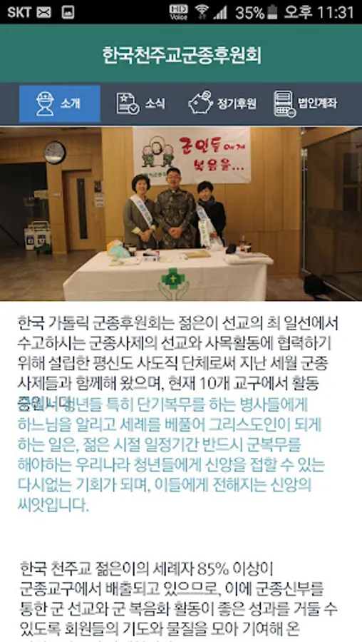 저희 군종후원회와 함께 우리나라 청년들에게 신앙의 씨앗을 전해주세요! [목차] 1. 소개 : 군종후원회를 소개 합니다.
